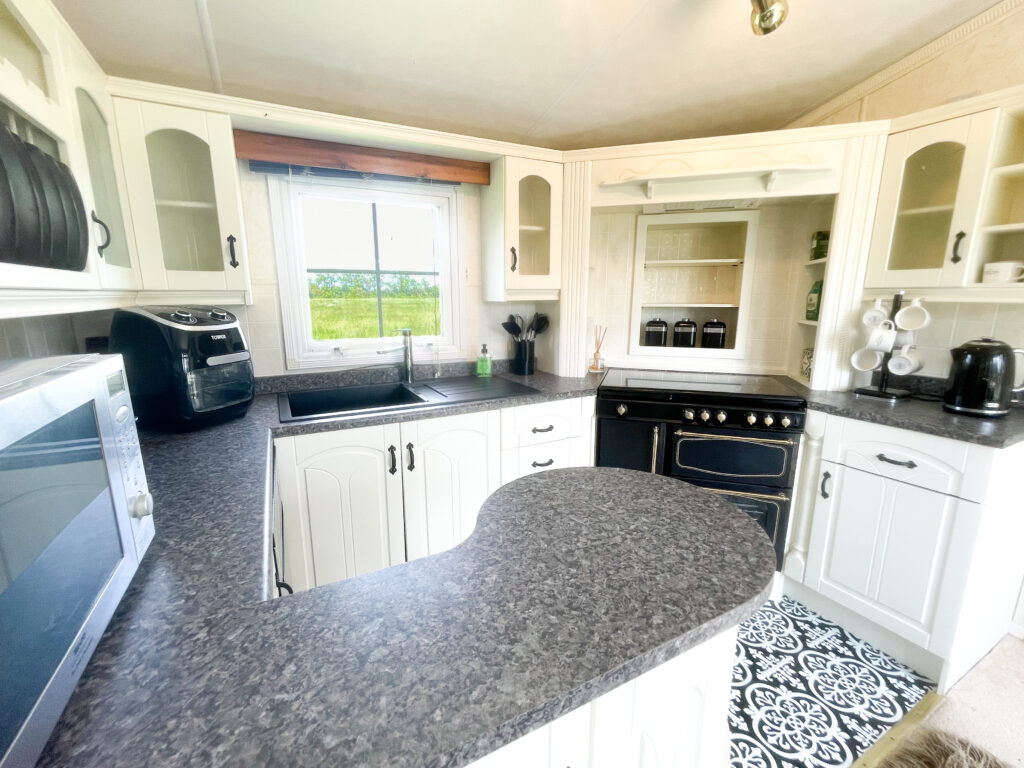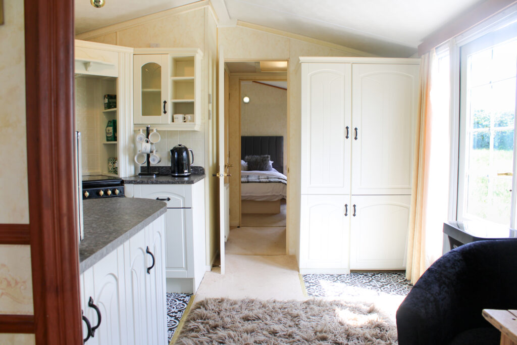 Peaceful static caravan with open countryside views. Perfect for couples or solo stays.